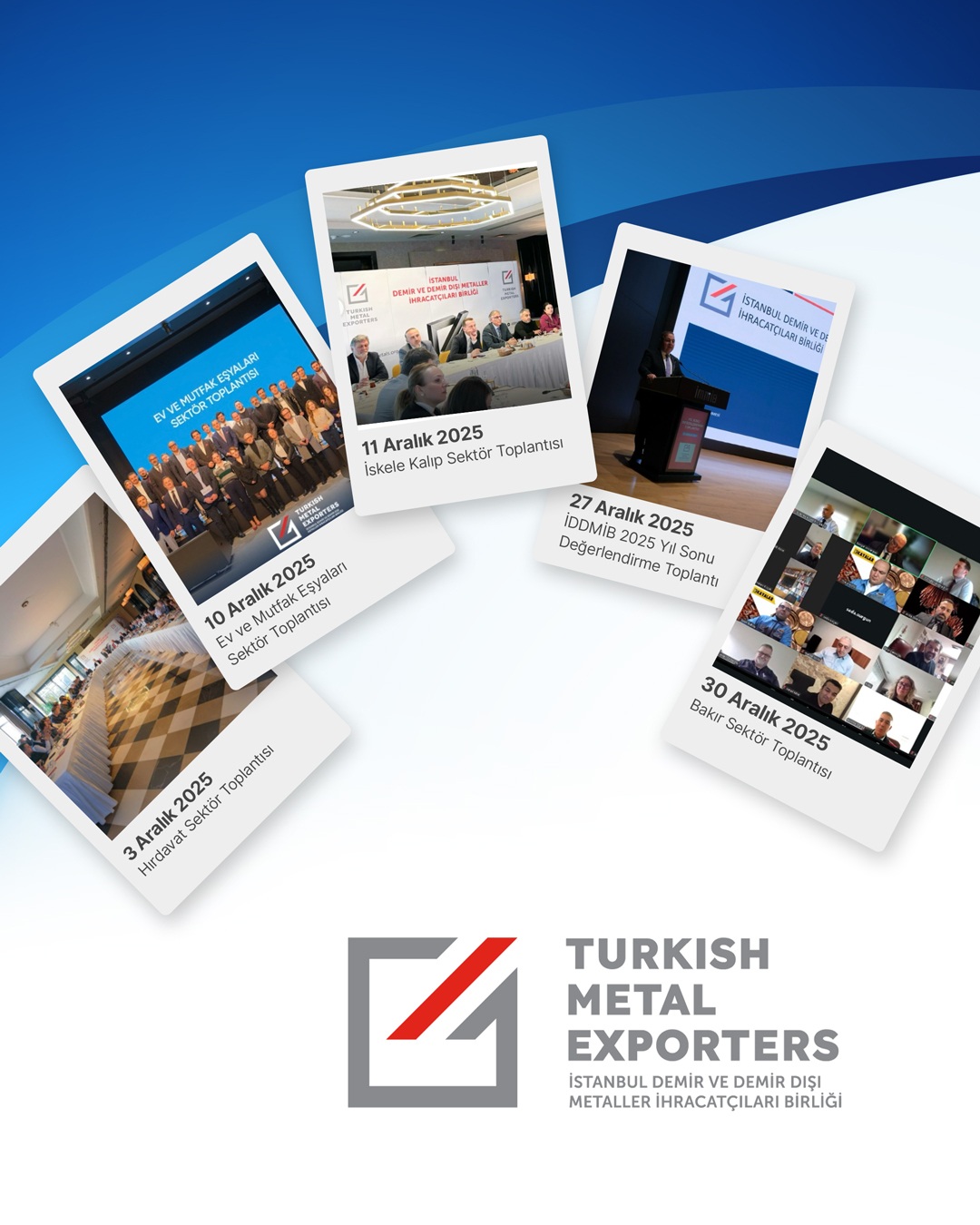 27 Aralık 2025: İDDMİB Yönetim Kurulu Başkanı Çetin Tecdelioğlu'nun açılış konuşmasıyla başlayan toplantıda, Demir ve demir dışı metaller sektörü ile alt ürün gruplarının 2025 yılına ilişkin genel görünümü değerlendirilirken, ihracat performansı ve 2026 yılına yönelik beklentiler ele alındı. Yönetim ve Denetim Kurulu Üyelerinin de yer aldığı toplantıda, İstanbul Topkapı Üniversitesi Rektörü Prof. Dr. Emre Alkin, Türkiye ve dünya ekonomisine dair kapsamlı analizleriyle katkı sundu.
