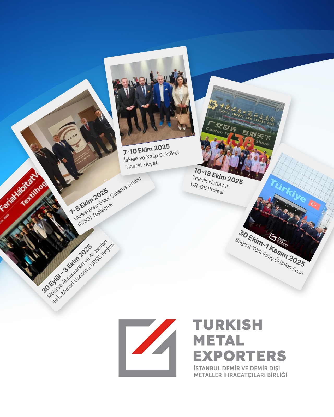 30 Ekim-1 Kasım 2025: Bağdat Türk İhraç Ürünleri Fuarı, Irak'ta düzenlendi. T.C. Ticaret Bakanı Sayın Ömer Bolat ve Irak Ticaret Bakanı Sayın Etir Davud Selman El-Greyri'nin katılımlarıyla açılışı gerçekleştirilen fuarda, İstanbul Demir ve Demir Dışı Metaller İhracatçıları Birliği info standı ile yerini aldı.