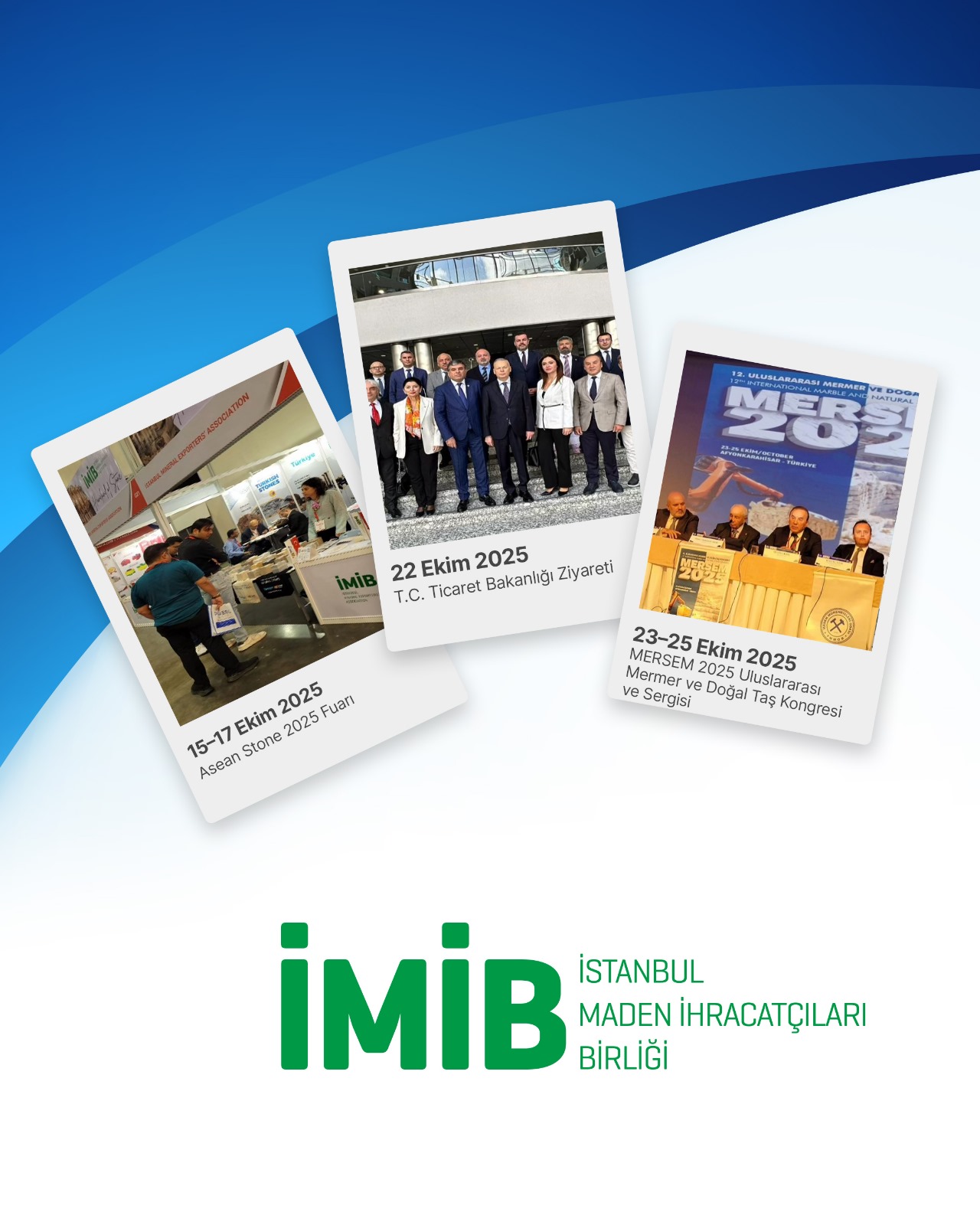 23–25 Ekim 2025: İstanbul Maden İhracatçıları Birliği Afyonkarahisar'da düzenlenen Uluslararası Mermer ve Doğaltaş Kongresi ve Sergisi (MERSEM'2025) etkinliğine info stant ile katılım sağladı. Afyon Kocatepe Üniversitesi ve TMMOB Maden Mühendisleri Odası tarafından düzenlenen ve sektörün önemli paydaşlarını bir araya getiren etkinlikte İstanbul Maden İhracatçıları Birliğini, Başkan Yardımcısı Metin Çekiç ile Yönetim Kurulu Üyesi Funda Bekişoğlu temsil etti. Kongrede, mermer ve doğaltaş sektöründeki güncel gelişmeler, sürdürülebilir madencilik uygulamaları ve yeni teknolojik yaklaşımlar üzerine değerli paylaşımlarda bulunuldu. Ayrıca İMMİB Ekonomik Araştırmalar şubesinden Bahri Akyüz kongrede “Türkiye Doğaltaş Sektörünün Küresel Rekabetçiliği: 2024 Yılı Perspektifinde Fırsatlar, Zorluklar ve Stratejiler” konulu çalışmayı sundu. Sunumda Türkiye ihracatında sektörün 1995-2023 yılları arasında gösterdiği performans ele alınarak sektörün mevcut konumu, ihracat performansı ve rekabetçilik göstergeleri değerlendirildi.