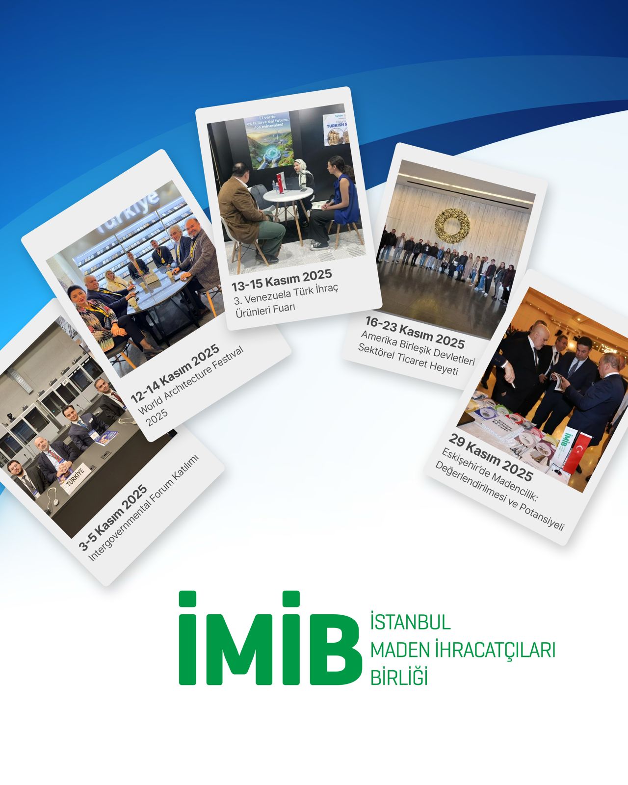 13–15 Kasım 2025: Venezuela'nın Karakas şehrinde düzenlenen Venezuela Türk İhraç Ürünleri Fuarı'na, İMİB ve EİB ortak standla katıldı. Türk doğal taşlarının tanıtımını gerçekleştirmek ve sektörü uluslararası alanda temsil etmek amacıyla bu önemli organizasyonda yer alındı.