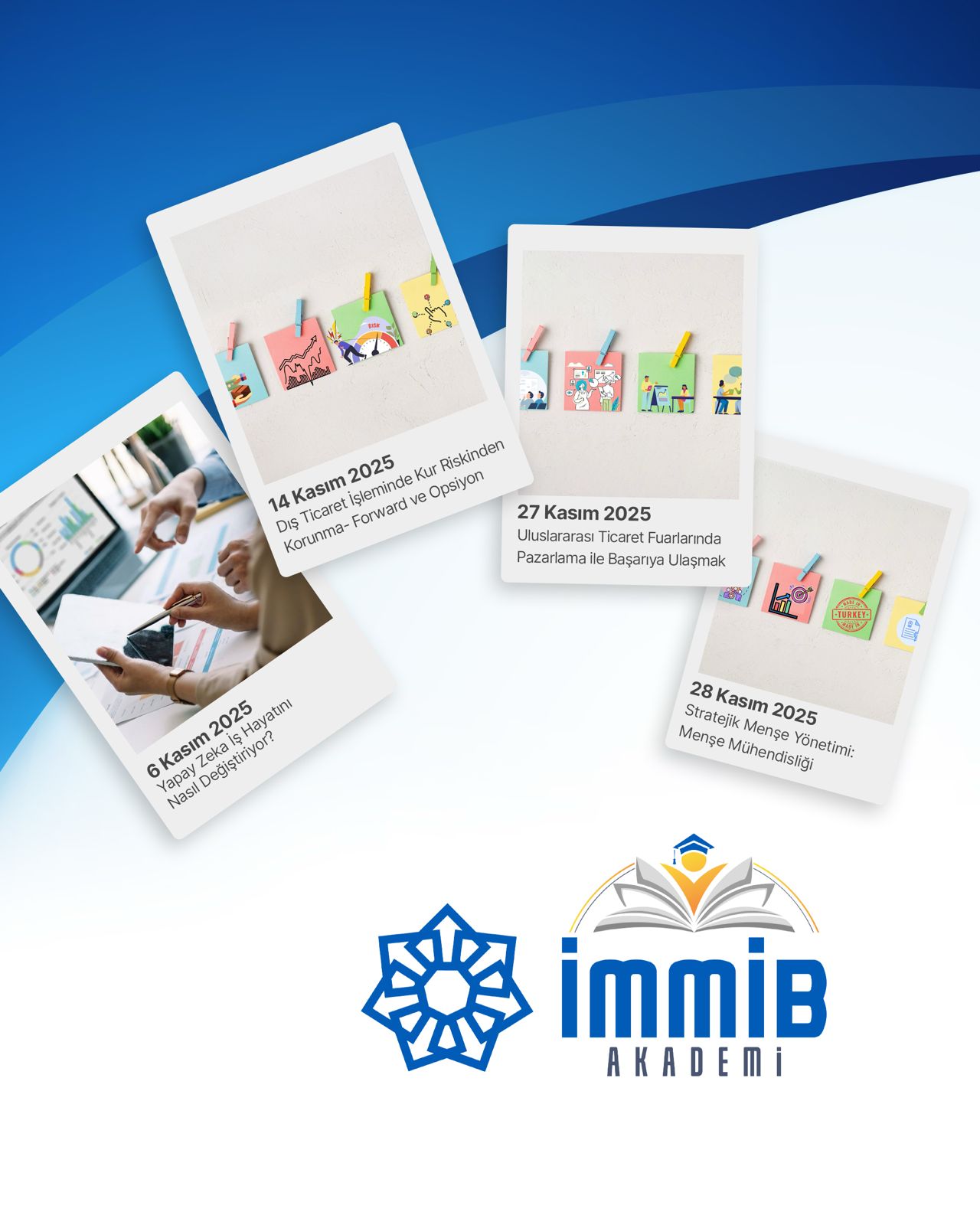İMMİB Akademi tarafından ihracatçılarımızın istifade edebileceği 12 eğitim düzenlendi. Genel Sekreterliğimizce düzenlenecek eğitimler için akademi.immib.org.tr