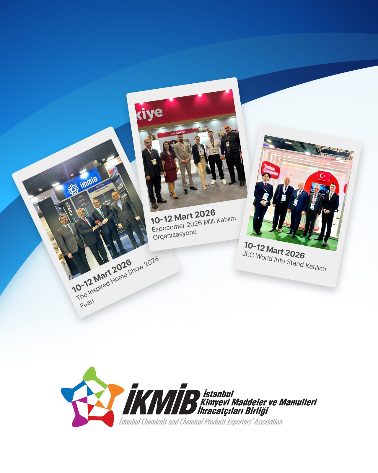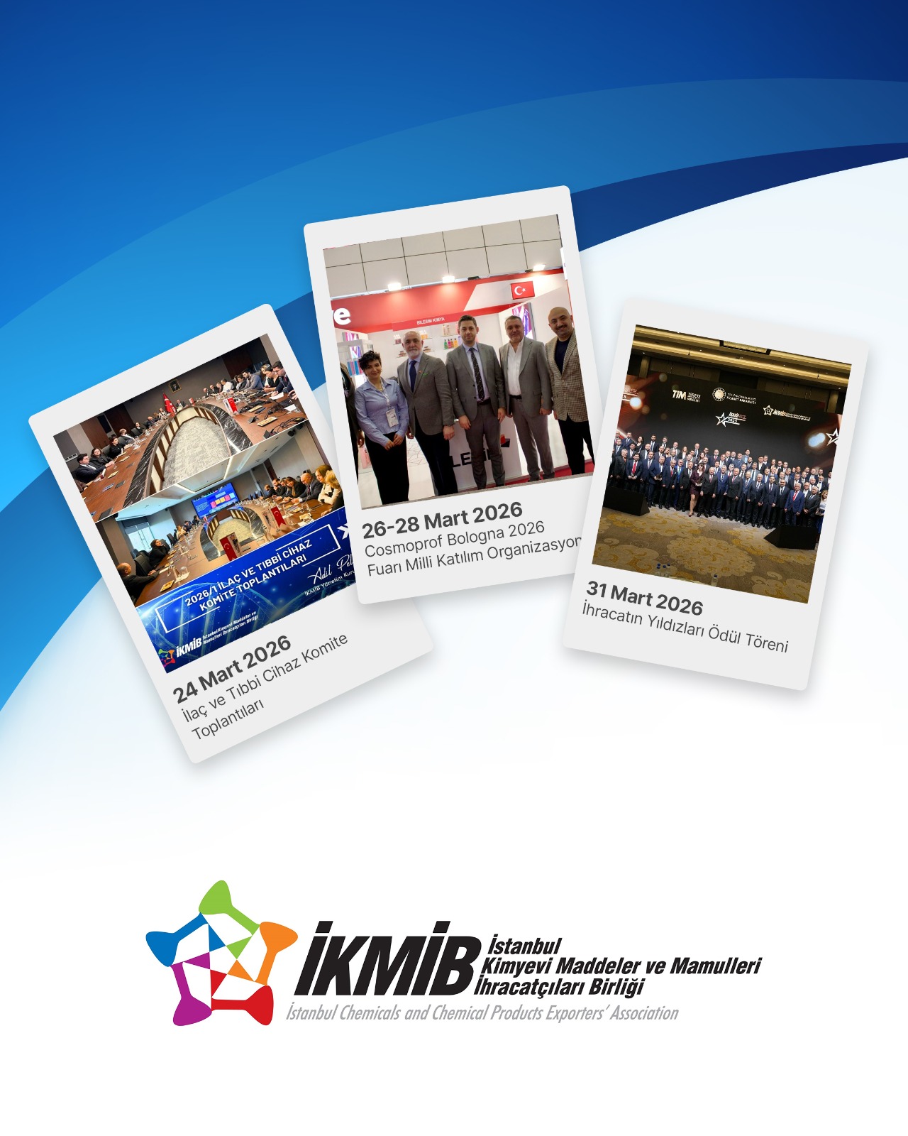 26-28 Mart 2026: Bologna/İtalya'da gerçekleşen “Cosmoprof Bologna 2026 Fuarı” ülkemiz milli iştirak organizasyonu bu yıl 17. Kez İKMİB tarafından gerçekleştirildi. Kozmetik sektöründe dünyanın en önemli fuarlarından olarak kabul edilen ve 2026 yılında 57. Yılını kutlayan Cosmoprof Bologna Fuarı'nı yaklaşık 255.000 üzerinde kişi ziyaret etti. Fuar bu yıl 3.000 üzerinde katılımcıya ev sahipliği yaptı.