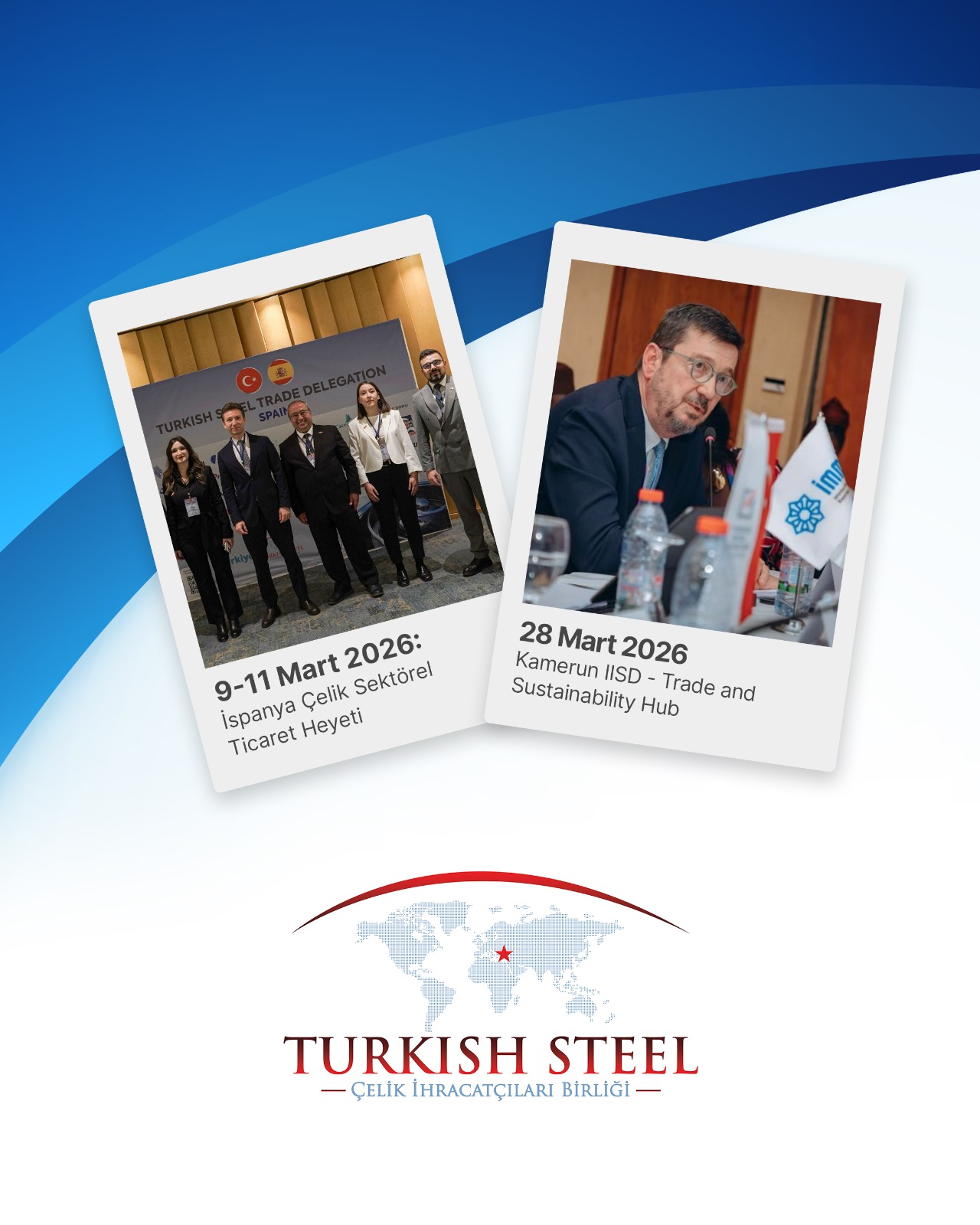 28 Mart 2026: Dünya Ticaret Örgütünün 14. Bakanlar Konferansı (MC14) ile eş zamanlı olarak Kamerun'da IISD'nin organize ettiği Trade and Sustainability Hub'da “Sektörler Arası İş Birliği ile Endüstriyel Dekarbonizasyon: Türkiye'nin Düşük Karbon Ekosistemini Oluşturma” başlıklı İMMİB tarafından düzenlenen oturum 28 Mart 2026'da gerçekleşti. Söz konusu oturumda Çelik İhracatçıları Birliği Başkan Yardımcısı Uğur Dalbeler dekarbonizasyonun getirdiği zorluk ve fırsatları değerlendirirken, artan korumacılık önlemlerini de ele aldı.