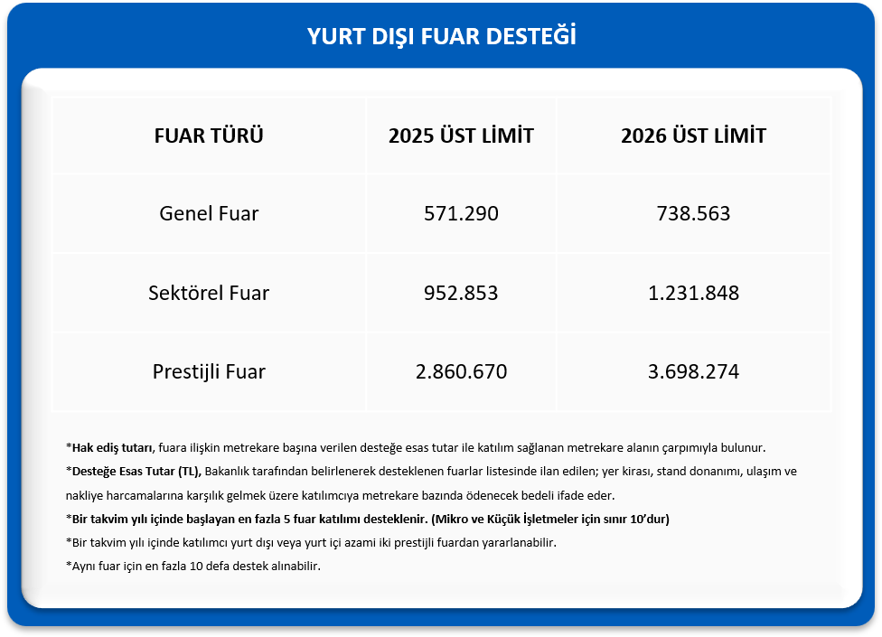 - Fuar Desteği Bakanlık sayfası için tıklayınız.